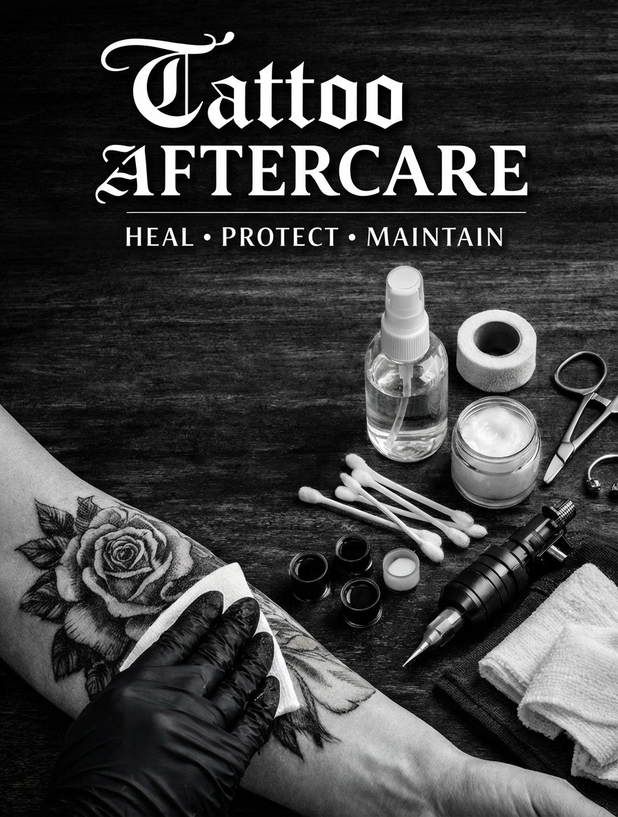 245 Camden High St, London NW1 7BU, United KingdomEssential aftercare instructions to support safe healing, prevent infection, and protect your new tattoo or piercing.